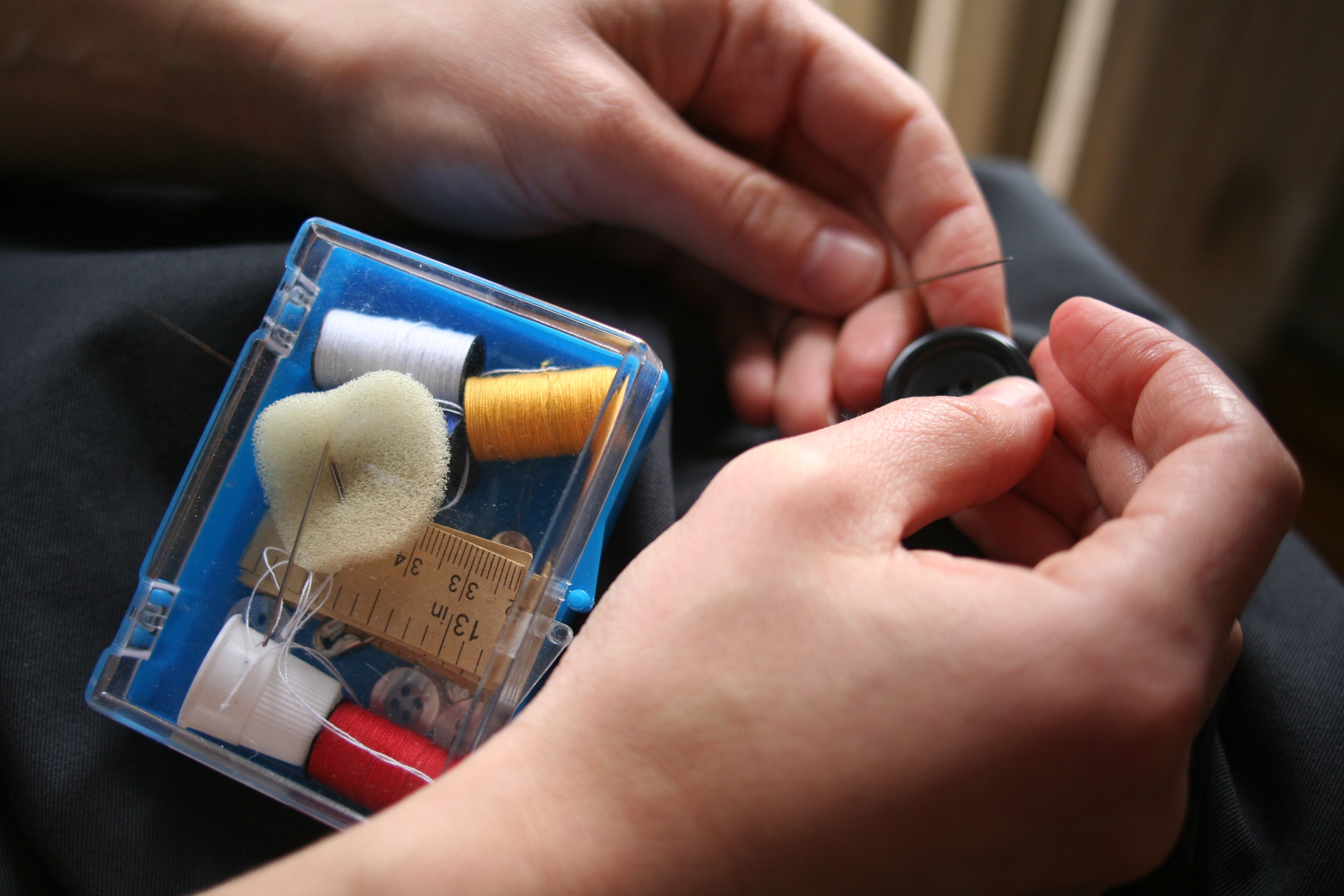 9. Sewing buttons onto shirts by hand using basic needle and thread skills.